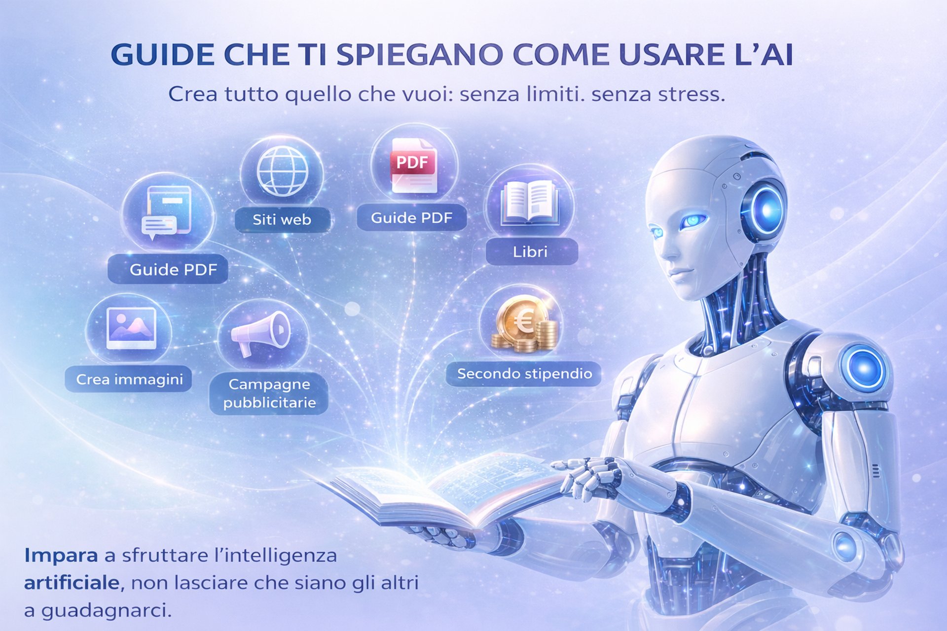 Una guida pratica e onesta che ti mostra come usare l’Intelligenza Artificiale per creare guide, siti web e prodotti digitali reali, partendo da zero e senza spendere soldi in corsi costosi.